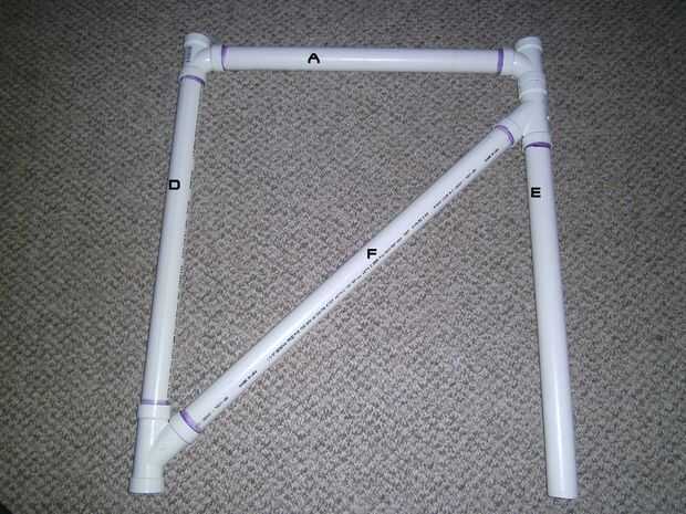 Ahora, corta un pequeño trozo de PVC (1.5") y pegar en la parte superior de la estrella donde se reúnen e y f . Esto le permitirá unir el resto de la Asamblea.