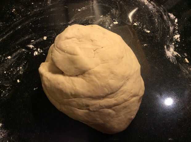 luego Espolvoree harina sobre la encimera y amasar con gusto durante unos 5 minutos, hasta que esté suave y flexible.