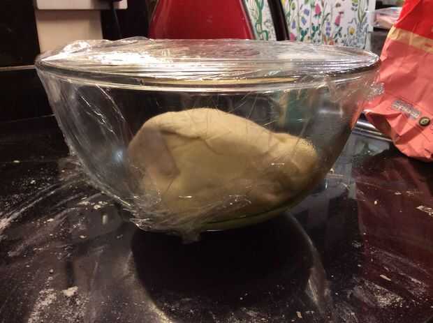 Ahora tomar un tazón limpio, añadir una babosa de aceite de oliva y ponga la masa en el recipiente, usando la masa sí mismo como una herramienta para untar el aceite en todo el interior de la taza. Cubra el tazón en una toalla de té o se aferra película, utiliza film transparente para mayor claridad y en un lugar cálido a elevarse.