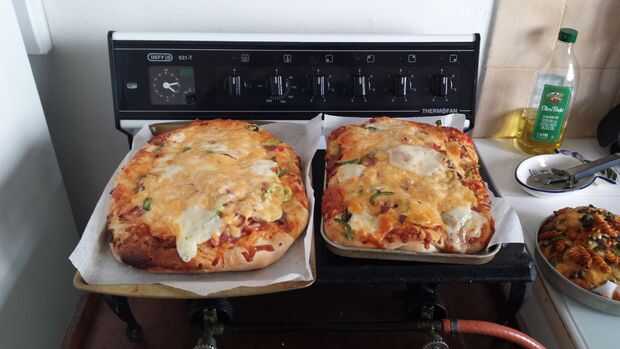 Hogar pizza hecha es genial! Pizza hecha casera fácil es mejor!Normalmente no soy un gran fan de hmp, debido a los resultados del pasado. Generalmente la gente hace 1 pizza cuadrada grande (como encaja perfectamente en la mayoría de los hornos) y pon