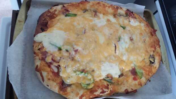 Hogar pizza hecha es genial! Pizza hecha casera fácil es mejor!Normalmente no soy un gran fan de hmp, debido a los resultados del pasado. Generalmente la gente hace 1 pizza cuadrada grande (como encaja perfectamente en la mayoría de los hornos) y pon