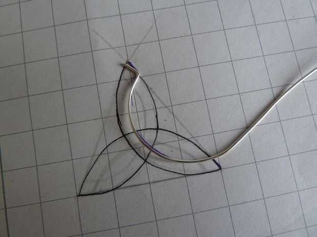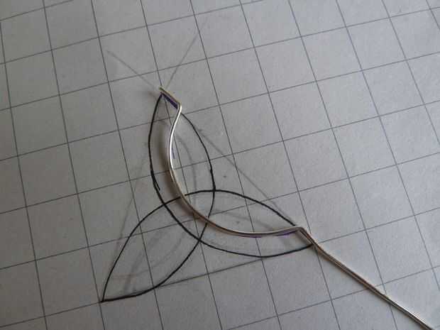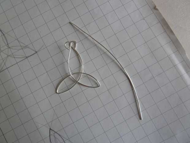 Puesto que la base está terminada ahora, es hora de empezar a hacer los arcos paralelos. Corte un trozo de alambre. Sujete el extremo hacia abajo utilizando pinzas de punta plana y dobla el alambre en forma de arco, comparable a los arcos que utilizan para la línea de fondo pero un poco más pequeña. En el extremo del arco, simplemente use nuevamente los alicates de punta plana para dejar el alambre en la dirección correcta. Cortar los extremos.