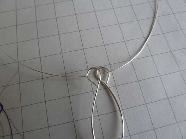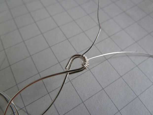 Cortar una pieza de calibre 26 0,46 mm de alambre y enrollarlo alrededor de ambos lazos. Esto cerrar la base en su forma, así que asegúrese de que se ve exactamente como usted quisiera que mirara.