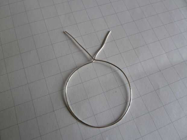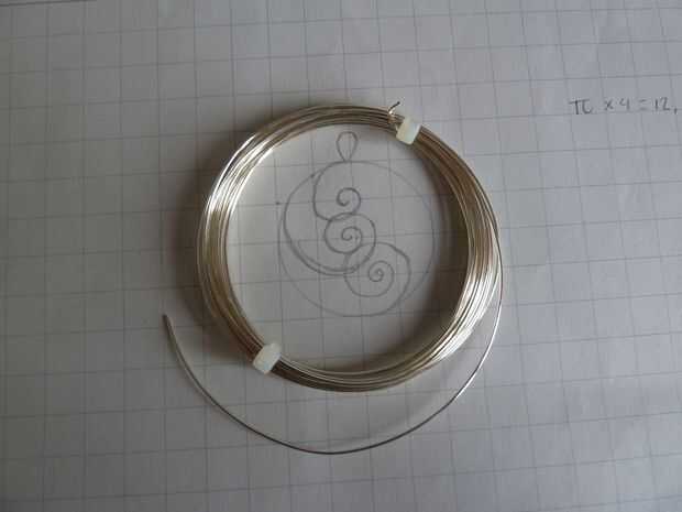 Para el círculo de base, simplemente se puede calcular la longitud de cable que necesitará. Un diámetro de 4 cm, multiplicado por pi, da una longitud de 12,56 cm. Añadir unos centímetros para hacer el lazo con el.