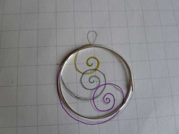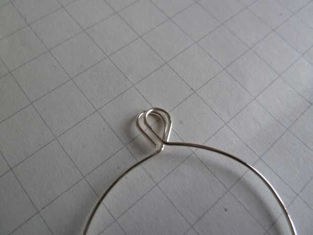 Tomar el objeto redondo y doblar el alambre alrededor de él, a partir de la media. Doble toque el extra de alambre también. Una vez que el círculo entero, tomar un par de alicates de punta redonda y sostener la parte superior del colgante con la punta de los alicates. Esto está en medio de las dos partes superpuestas. Los extremos de la curva recta hasta que estén en la posición que se muestra en la foto número tres.