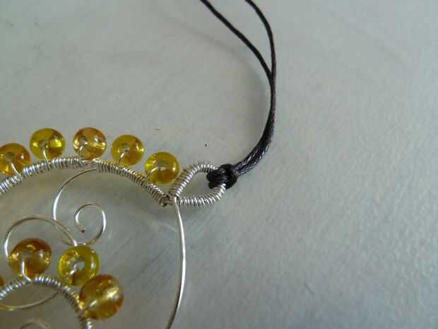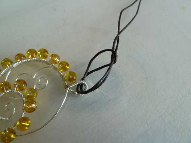 Cortar un trozo de cuerda, lo suficientemente larga para ser un collar. Hacer un nudo con ambos extremos y dóblalo por la mitad. Ponga el extremo a través del frente de la botonera y tire el extremo anudado a través del lazo que esto crea