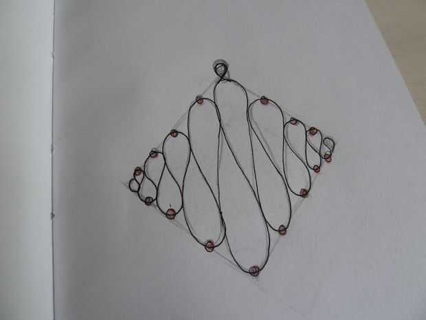 Cuando empecé este diseño, no tengo ni idea de cómo quería que parezca. Lo primero que atrajo fue la Plaza (tipo de) que se puede ver en las líneas de lápiz alrededor del pendiente. Después de hacer que me di cuenta que deseaba que el colgante se compone de garabatos, pero siendo organizados. Este diseño ondulado es lo que terminé con:)