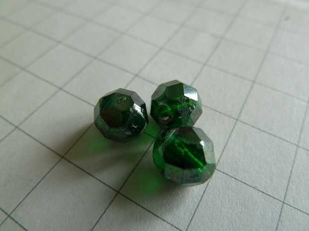 Finalmente me encontré con estos pequeños, redondos, granos verdes de cateye. El color no era exactamente lo que buscaba, pero ellos eran verdes y tenían el tamaño correcto, así que decidí usarlas de todos modos.