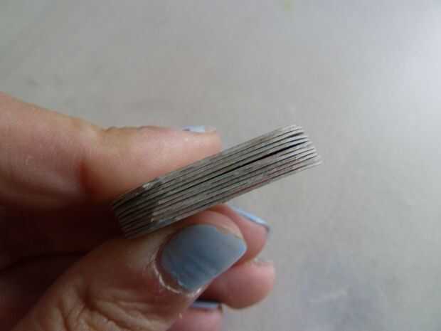 Bastante sencillo en realidad, toma tus tijeras y recorta las formas que trazó. Después la corte puede apilarlas para ver si crees que el grueso de la piedra es justo o no.