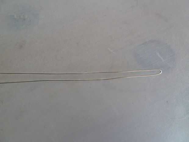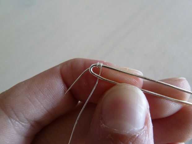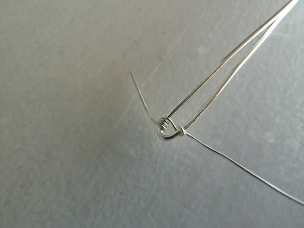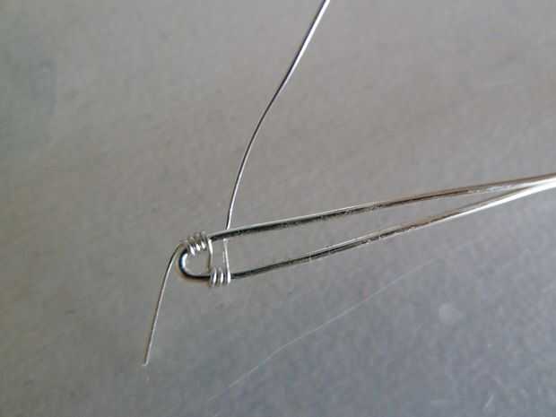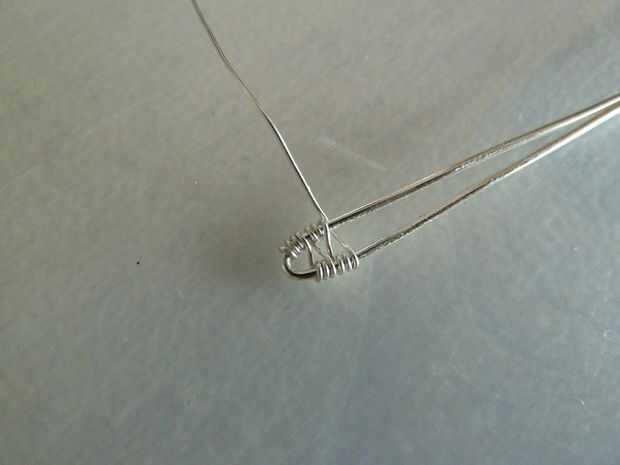 Cortar 30 cm de alambre y doblarlo por la mitad. Corte un pedazo largo de alambre fino así. Enrolle el cable alrededor del alambre de la primera base dos veces y luego dejar ir al otro lado como muestra la imagen y enróllelo alrededor de ese alambre dos veces. Repetir esto.