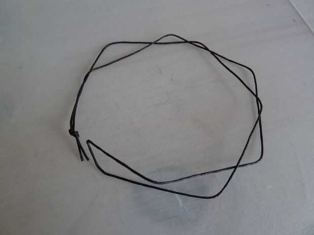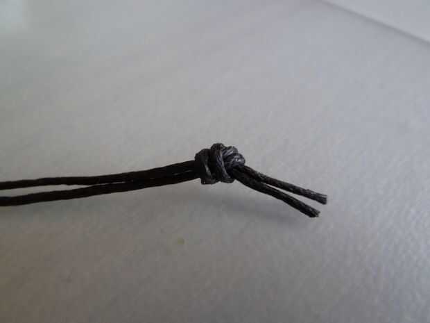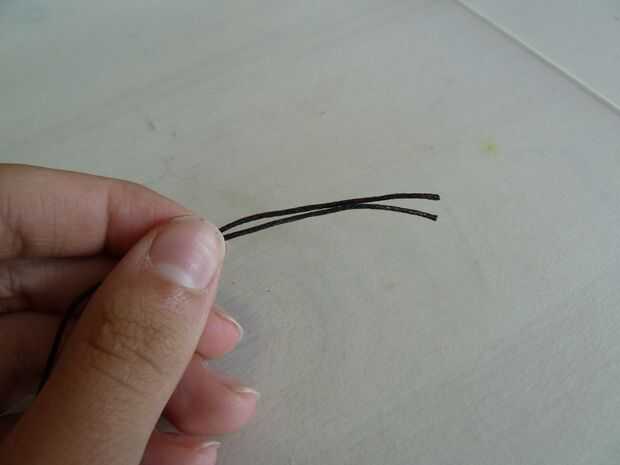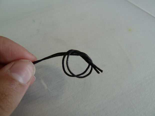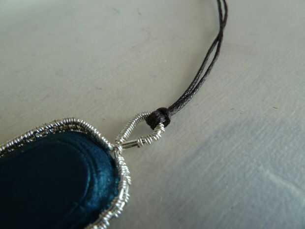 Cortar un trozo de cuerda, lo suficientemente larga para ser un collar. Hacer un nudo con ambos extremos y dóblalo por la mitad. Ponga el extremo a través del frente de la botonera y tire el extremo anudado a través del lazo que esto genera (véase hufflepuff colgante para la instrucción completa imagen )
