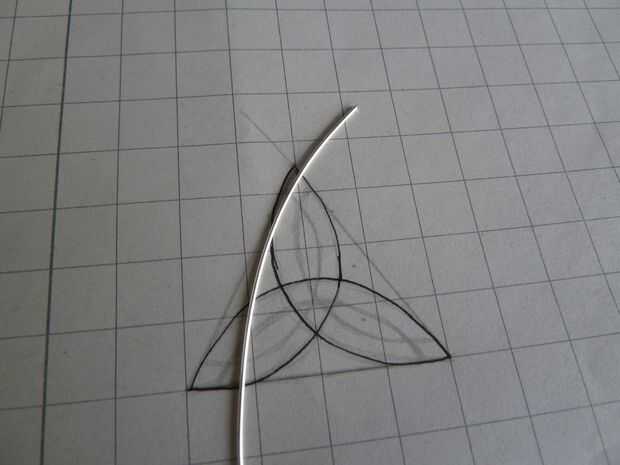 Utilice el objeto redondo para dar forma a la primera curva. Mi sacapuntas no era perfecto, pero lo suficiente para llegar de la forma correcta. Después de que se puede corregir con sus manos pinzas, sólo lo puso en la parte superior del dibujo para comprobar si alinea. Una vez que lo hace, pasar al paso siguiente.