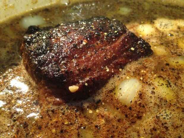 Elegir una cerveza, fui con el neumático de grasa nueva Bélgica. Tendrás sólo 2 botellas, así que siéntase libre de tomar un par de sorbos. Picar 1 cebolla y 4 dientes de ajo. Caliente una olla sobre fuego medio alto hasta que casi fumar. 2 cucharadas de aceite de oliva y añadir la carne. Marrón por todos lados, abrasadora en todo sabor. Una vez dorada retire de pan y añadir la cebolla y el ajo. Saltear 2 minutos. Revolver para quitar los dorados de la parte inferior de la olla y agregar la cerveza, 32 oz de caldo de pollo y especias restantes frotan a horno holandés. Retorno carne a la cacerola y asegurar líquido cubre la carne. Llevar a hervir, cubra y reduzca el calor a fuego lento. Cocinar a fuego lento durante 2,5 horas.