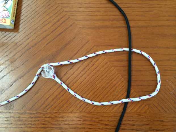 este nudo se utiliza para unir dos cuerdas de diferentes diámetros. Este nudo es más fuerte que el nudo de hoja curvaPaso 1: Hacer un brillante en el más grande de los dos cables a unir.Paso 2: Meta la segunda línea y tuck para arriba a través de la