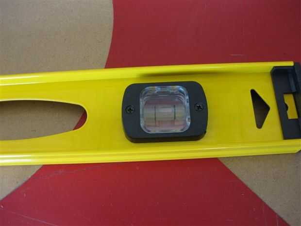 Luego he hojeado (dirección inversa) uno de los montajes de burbuja como la nivelación del eje de Y, dejando el otro extremo para la nivelación del eje de X.
