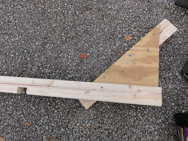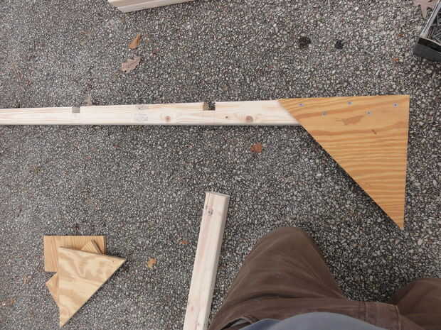 Arado de extremos asegurados a los horizontals de marco con piezas triangulares de madera contrachapada.