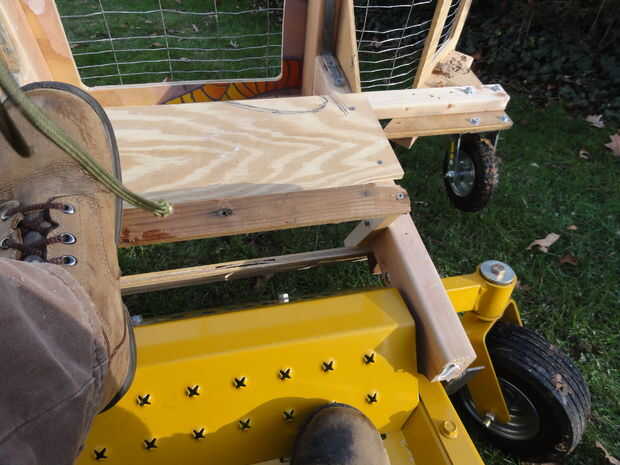 Se agrega un control de pie madera que pivota bloques de madera bajo los brazos para sujetar el arado del suelo arado.