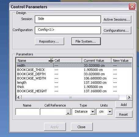 Cuando se abre la ventana de parámetros de Control, se popularán con los parámetros y sus valores desde el archivo de Alibre.
