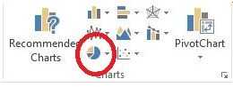 - En la ficha insertar en la parte superior de la página, vaya a la sección de cartas y haga clic en el icono de gráfico circular (circundado en la imagen de arriba). Usted puede seleccionar de una variedad de tipos de gráfico diferente - para este Instructable, seleccionamos un gráfico de anillos.