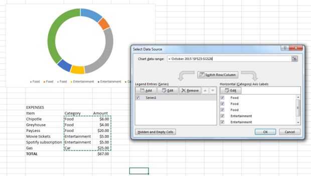 - Seleccionar todos los artículos en las categoría y cantidad de columnas, como se muestra en la segunda imagen de arriba. Aparecerá un cuadro de diálogo "Seleccione el rango de datos" y los datos que ha seleccionado de la lista.