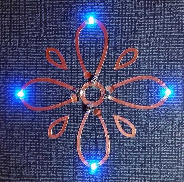Como todos los circuitos, estas formas pueden ser alimentadas con una batería, o para más diversión, con un microcontrolador como un Arduino. Este diseño incluye cuatro LEDs controlables independientemente.