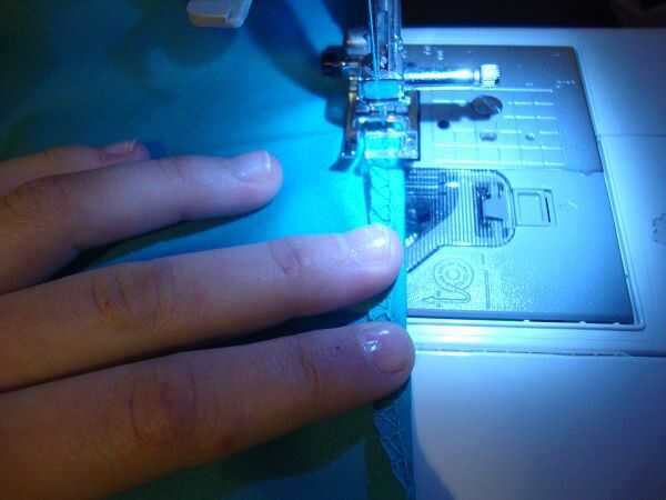 Si su máquina no tiene una puntada de sobrehilado, puede dobladillo doblando el borde hacia arriba dos veces y sólo costura alrededor.
