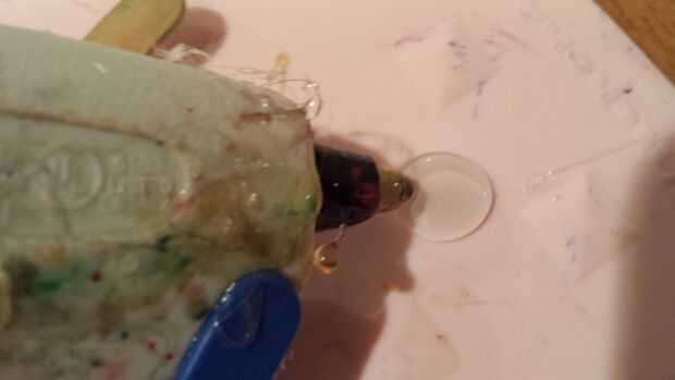Empezar haciendo un charco de pegamento caliente sobre el tamaño de una moneda de diez centavos. Hacer esto en el sostenedor de pote! El pegamento no se adhieren a él por lo que se puede pelar apagado más adelante.