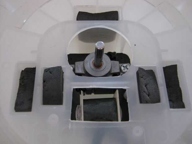 Después de cortar la abertura y teniendo cuidado de no cortar los cables ni los dedos, bloquee las aberturas cuadradas 5 con pedazos de goma espuma para desviar el flujo de aire a través de las aberturas de la armadura y bobina. Corte la espuma lo suficientemente grande como para cuña firmemente en los orificios, no bloquean apagado con sellador de silicona, puede que necesite acceder a las fichas para desmantelar en el futuro. Bloquear el anillo de salida de aire de agujeros cuadrados, son fundamentales para los dispositivos de principio de funcionamiento.