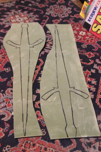 Hice un esbozo aproximado cortar más fácilmente manejable para el resto de la corte. Cuando había una hoja más pequeña, corté la forma más precisa. Recomiendo salir de medio a 1 cm extra material alrededor de los bordes de todas forma. Esto es para que si son errores, pueden ser de nuevo un poco sin cambiar demasiado la forma. Si se corta más o menos perfectamente, que no puede permitirse hacer ningún error. Su capacidad puede ser mejor que la mía aunque también lo hacen como usted desea.