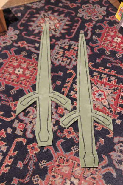 Después de cortar una forma, me pareció que la espuma más bien endeble así cortar otra forma similar por lo que dos piezas sería más grueso y menos flexible. Una simple prueba había demostrado que necesitaba más estructura. Para superar esto, hice un corte superficial en el interior de la espuma e insertado bambú pinchos después había quitado los extremos afilados. Los puntos fueron retirados para que el bambú no eventualmente empujar hacia fuera a través de espuma y provocar lesiones (es decir, cuando el apoyo está doblado, podría llevar en el interior sección del apoyo y eventualmente corta si llegara a estar afiladas).