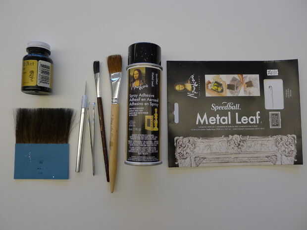 3) adhesivo de Leafing - he probado dos de ellos, uno es del viejo mundo arte "pan de oro" adhesivo tamaño #802 - esto ha trabajado genial para mí en el pasado para la hoja de oro genuino, no funcionó tan bien con la hoja de plata imitación. Utilizo fue Speedball Spray adhesivo para hoja de Metal.
