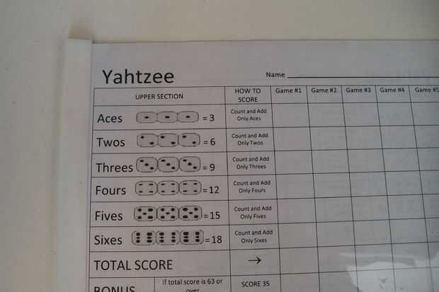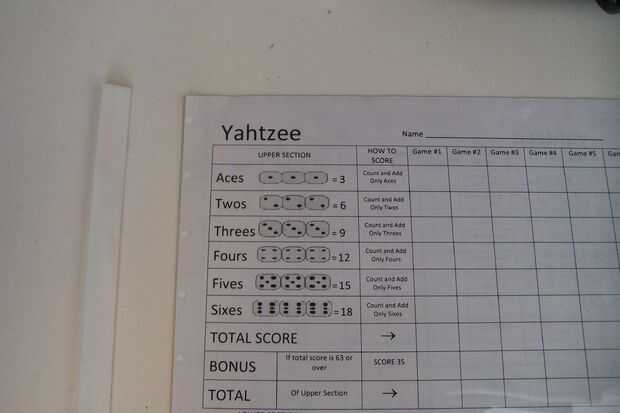 Hoja de puntuación de YAHTZEE reutilizable (3 / 6 paso)