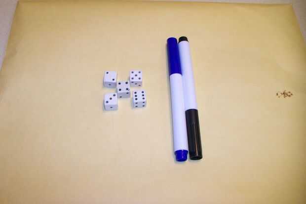 1) agregar 5 dados, no tienen que coincidir.  Si tienes niños que están obligados a tener unos dados callejeros.  Si no tienes dados callejeros luego comprar nuevo o usado.