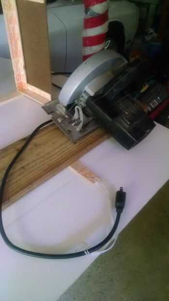 hace más de 40 años quería una tabla vio, pero tenía muy poco dinero. Compré una buena sierra circular y había colgado por debajo de un pedazo de madera contrachapada de 3/4 de pulgada. He añadido un par de mis innovaciones, y podría hacer trabajo mu