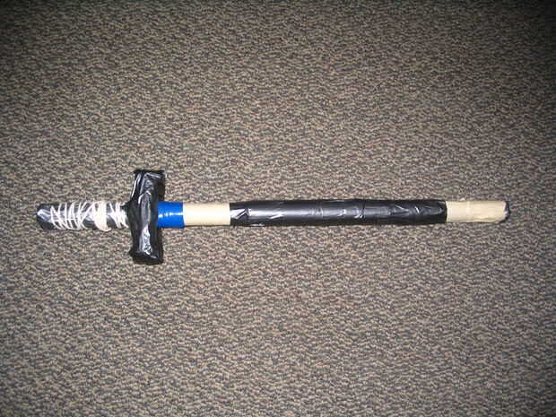 Se necesita un envoltorio papper tubo (suele ser robusto y rígido), un tubo de papel higiénico, alguna cinta adhesiva y tijeras. Si quieres una espada muy fuerte consigue una caja de cartón o de otro, menos rígido tubo de papel de embalaje. También puede obtener algunos más tubos de cartón, hilo, cadena, cintas de colores diferentes como cinta adhesiva, cinta adhesiva de color o cinta aislante.