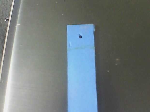 1. tomar la corte pizarra blanca junto con otro tablero largo azul y tomar la hoja, hacer un agujero en el tablero en los bordes como se muestra en la imagen.