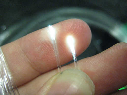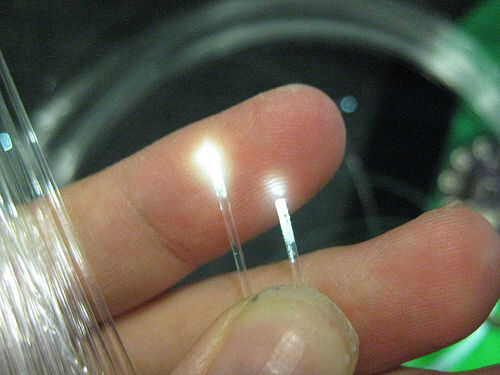 Si su paquete de la fibra óptica es buena, debe ser transparente y llevar la luz. (Puede verificar esto sin LED como su entorno es brillante)