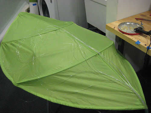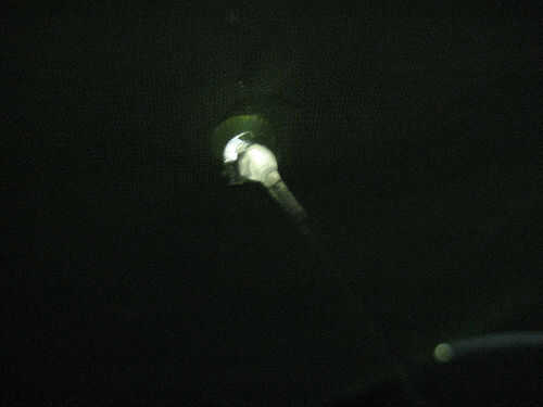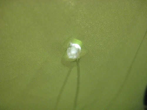 A continuación, se encuentran por debajo de la hoja. Archivo/fibra óptica muy cerca del borde de la hoja de la arena. Lijado/presentación ayuda a desactivar la luz en lugar de tener un punto. Tomar una gota clara, deslice hacia arriba el filamento y caliente pegamento muy cerca de la hoja. Recortar la fibra óptica.