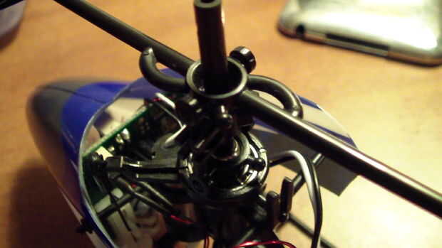 Ahora que la varilla esté equilibrada, deslícelo sobre el eje principal y conectar plato cíclico vínculos a la varilla, como se muestra a continuación.