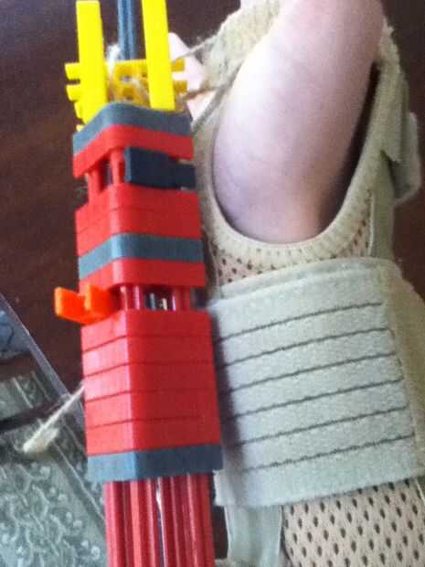 este es una manual de hoja ocultaPaso 1: Reunir las partes Que tenga 2 correas, 3 calcetines (no tobilleras), espada de 1 juguete retráctil (el mío es el estoque de juguete de Indiana Jones y la Calavera de cristal) un pegamento caliente pistola, tij
