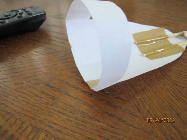 cinta ahora una tira de papel al lado de la base no puntiagudo. Esto mantendrá a su brazo.