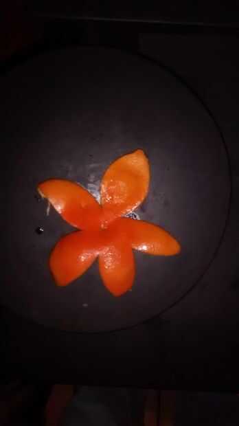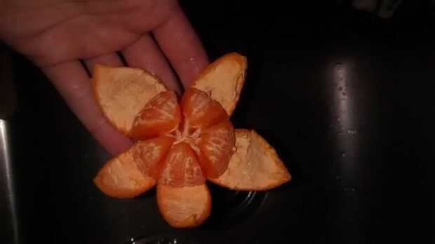 2a. con cuidado jale la cáscara sin lo rasgado. Retire la fruta para comer. La piel debería parecerse a una estrella.