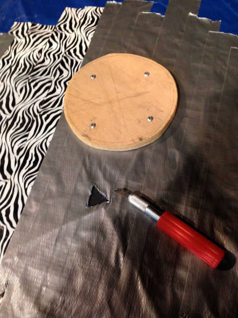 1. encontrar el punto de centro del anclaje madera y coincidir con el punto central de la base (en la parte inferior sobre la cinta americana).