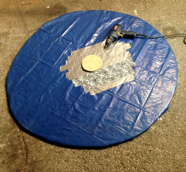 4. dé vuelta la base (de modo que depende de la parte superior) y se adhieren a la boquilla del soplador de la hoja en el agujero con cinta adhesiva.