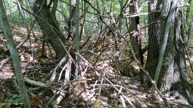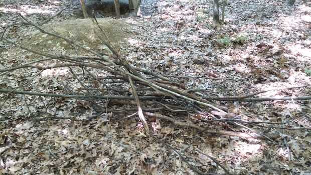 Recoger un montón de ramitas de palito y ramas. Deben no más grueso de 2" de diámetro. Luego de la pila los palillos modo que haya espacio debajo de los palos.