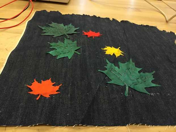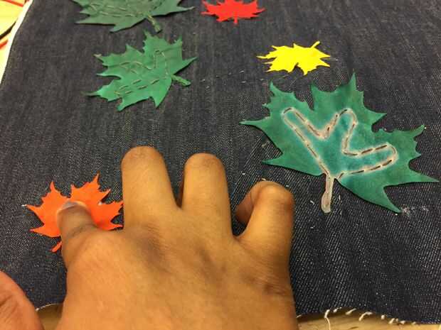 Este proyecto utiliza termocrómico y un elemento de calefacción para hacer la hoja de maple cambiar colores.