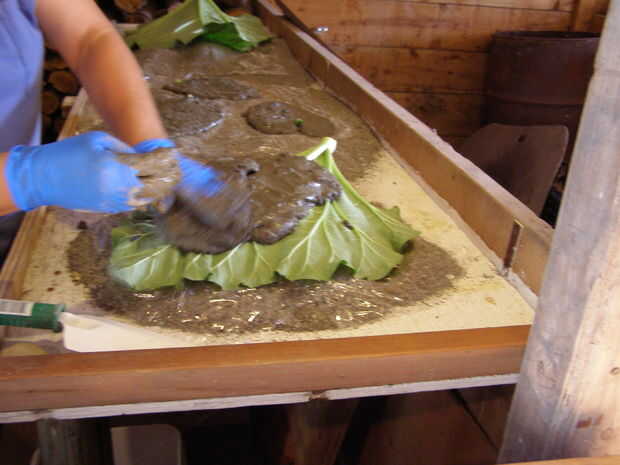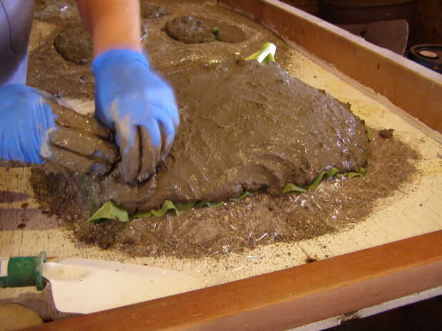 Sigue hablando de una hoja mediana, se trata de 3/4 a 1 "espesor a lo largo de la costilla, disminuyendo a aproximadamente 3/8" de espesor en los bordes. La envoltura del balanceo puede Sobrehilar hasta los bordes. Do el espesor en dos pasos si desea agregar el cable colgante, o malla de alambre de cinta/pollo. Este último aconsejó si colgando y para grandes para hojas de monstruo.