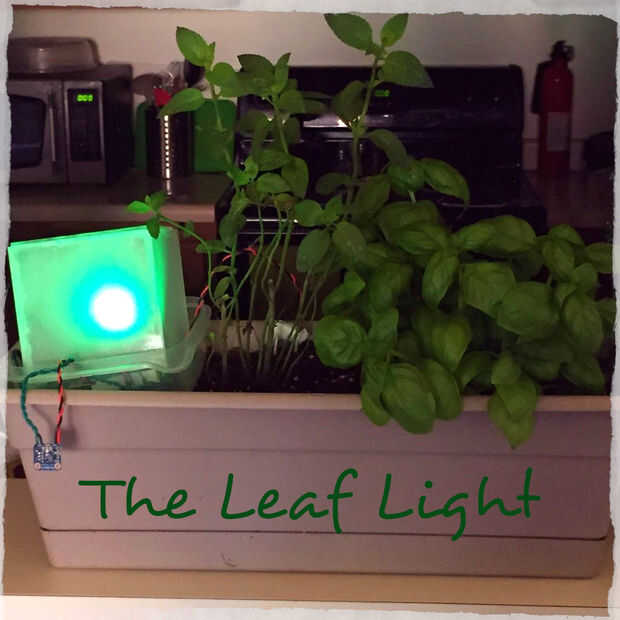 La luz de la hoja consiste en un sensor de humedad del suelo, sensor de luz y LED multicolor/NeoPixel conectado a un Arduino que se encuentra en o cerca de una planta. Está rodeado por un envase del plexiglás helado, que hace una luz atractiva y se ilumina de diferentes colores basados en el estado de su jardín. Esto es lo que los colores significan: