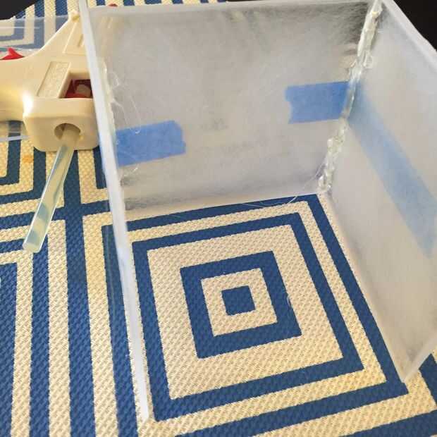 - Utilice la pistola de pegamento caliente para unir las piezas en un cubo de cinco lados.