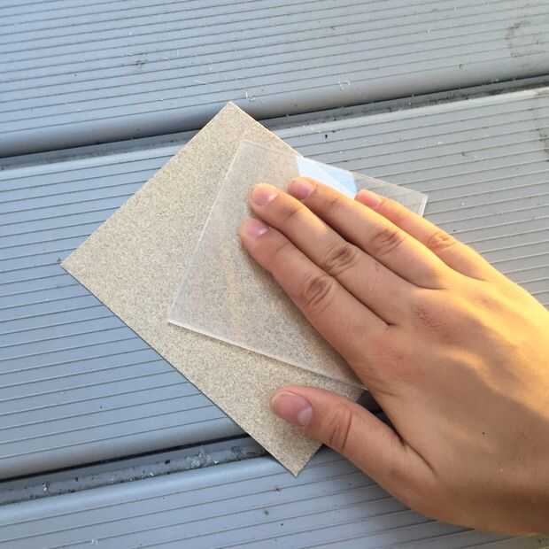 - El papel de lija se mueven en círculos en ambos lados de cada pieza a rayar hasta que tiene un efecto translúcido.
